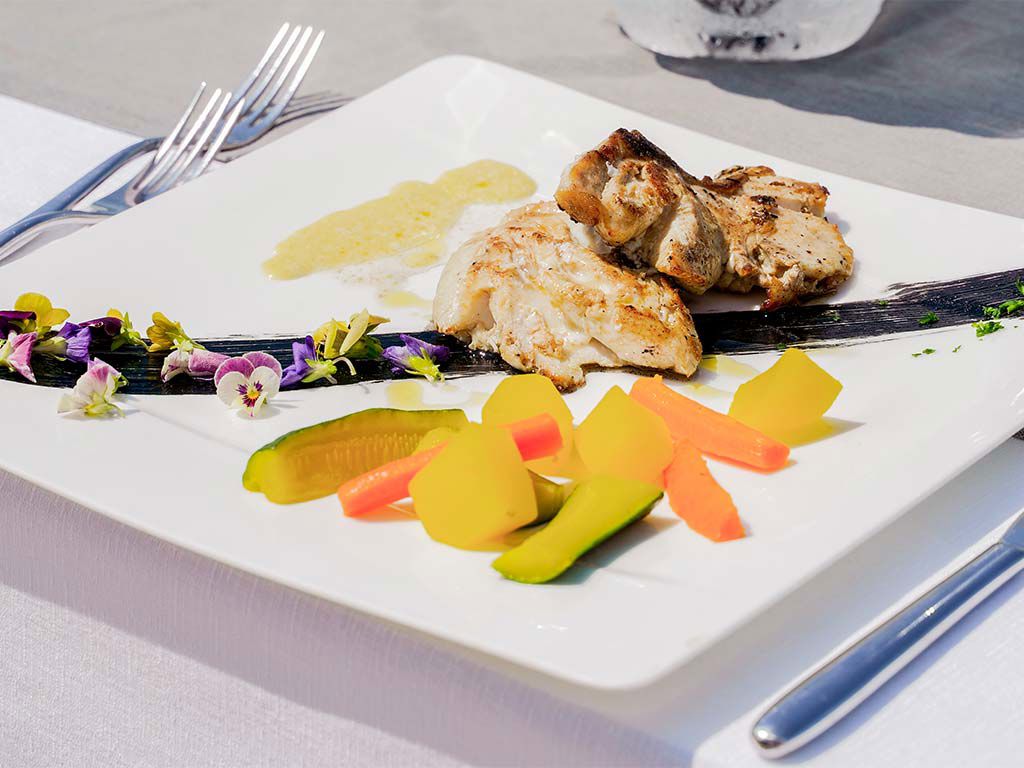 Lo chef propone piatti gourmet preparati con ingredienti freschi di stagione e di alta qualità, reinterpretando la tradizione mediterranea con un tocco di innovazione. Il menu degustazione è un viaggio alla scoperta dei sapori del territorio, con abbinamenti di vini pregiati.